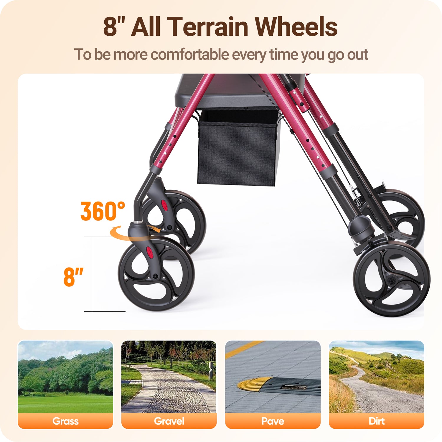 8" All-Terrain Wheels for Smooth Outdoor Mobility