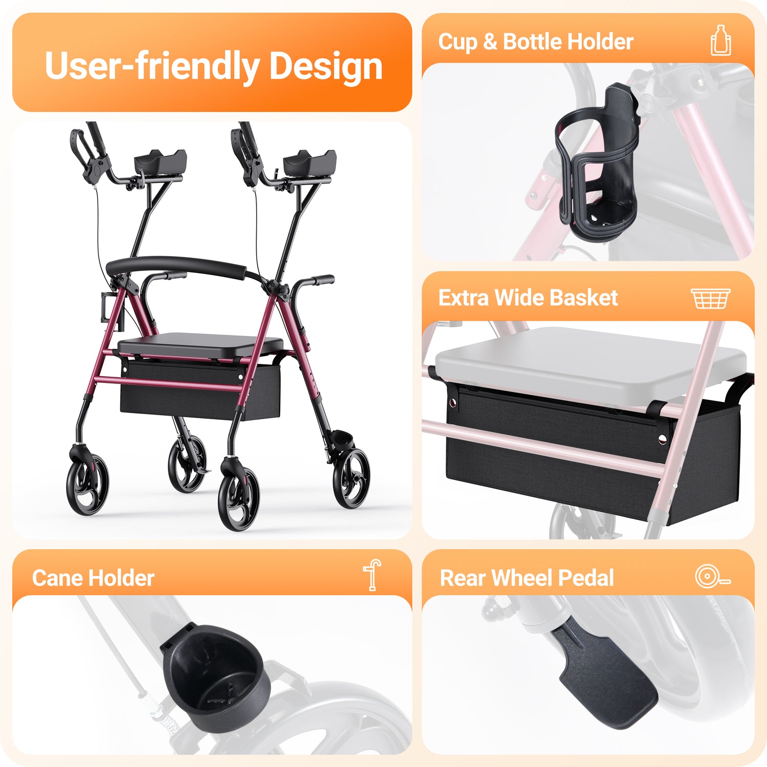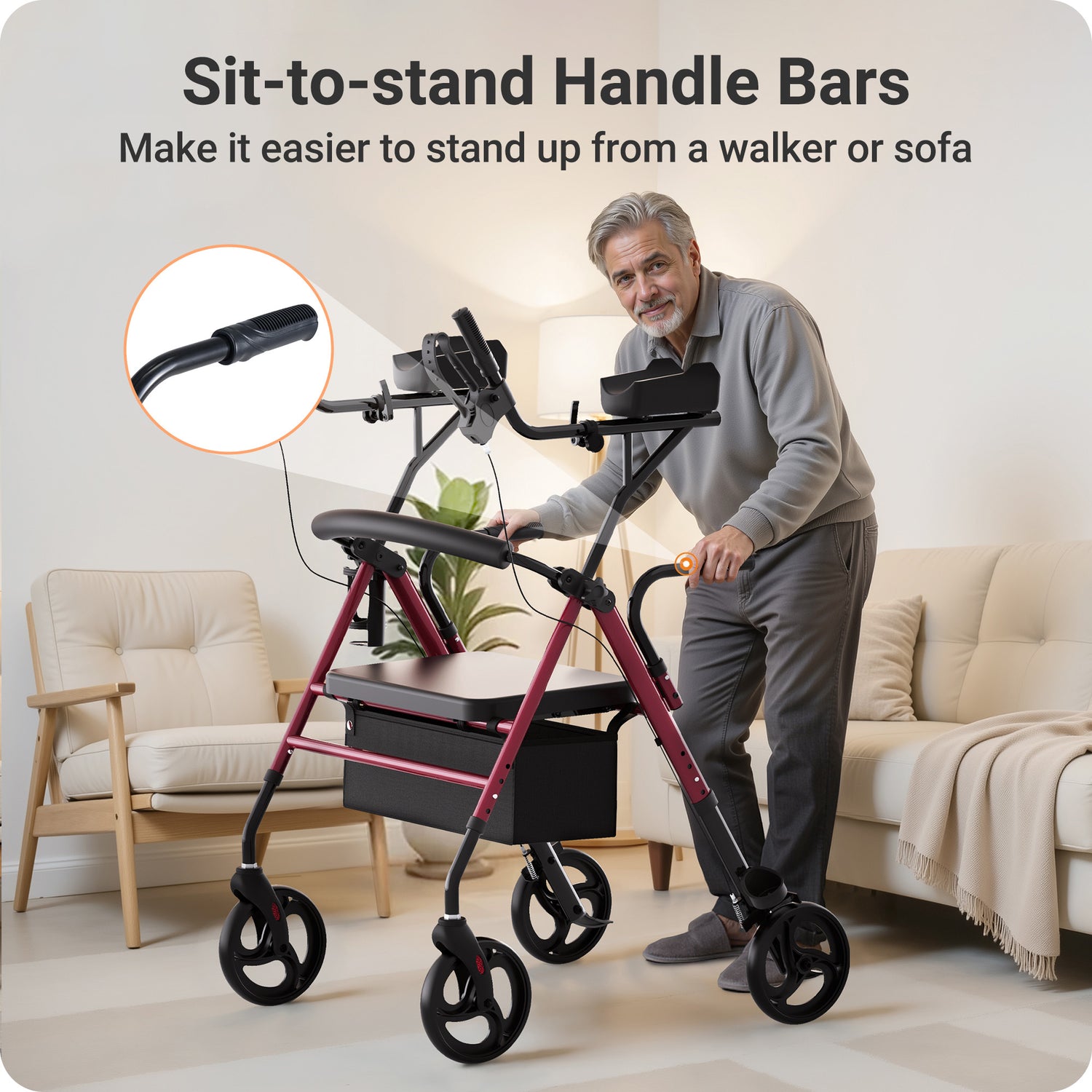 Switch freely between an upright walker and a traditional rollator to match your comfort and mobility needs.