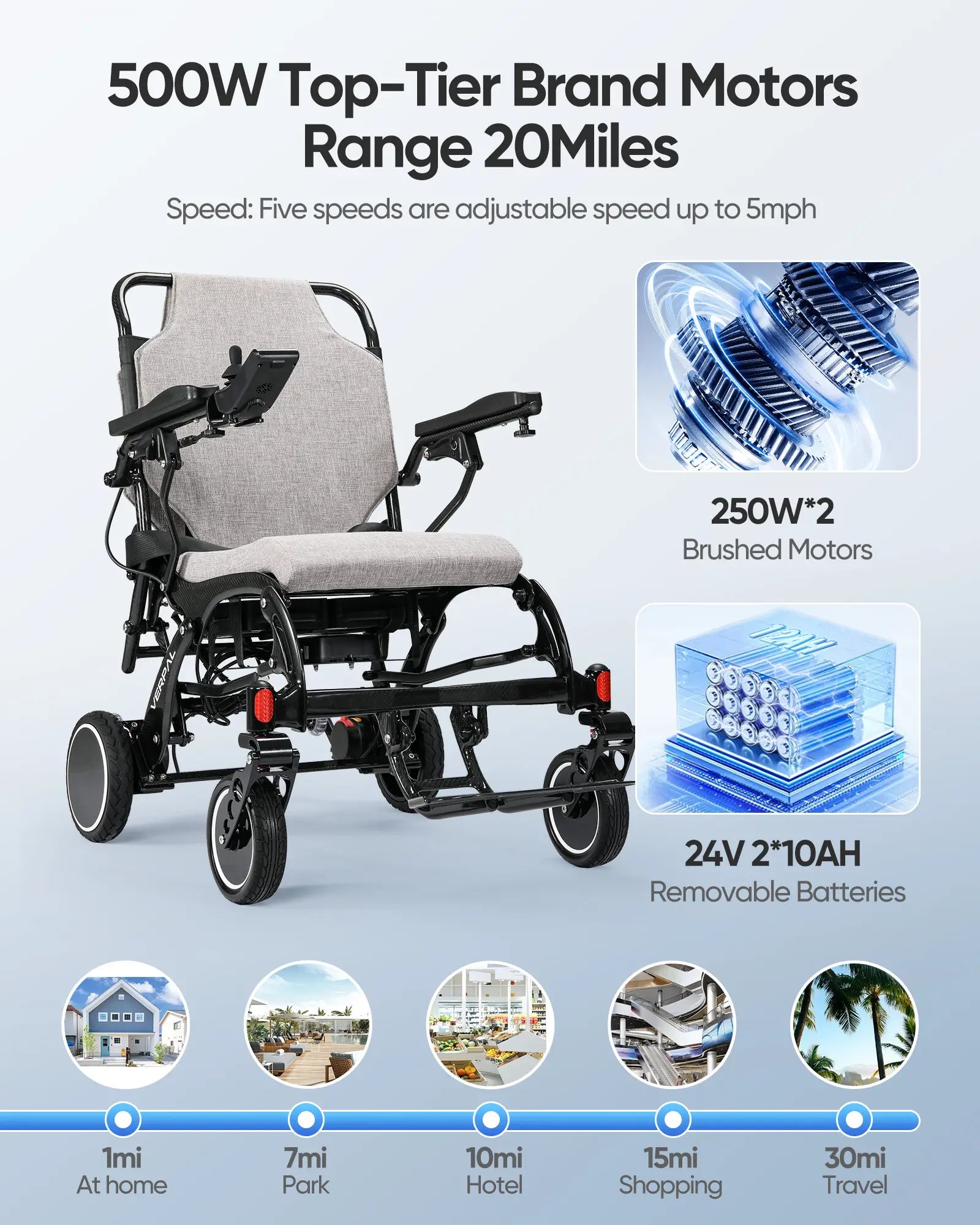 Verpal Wireless Charging and LCD Display Electric Wheelchair DC01